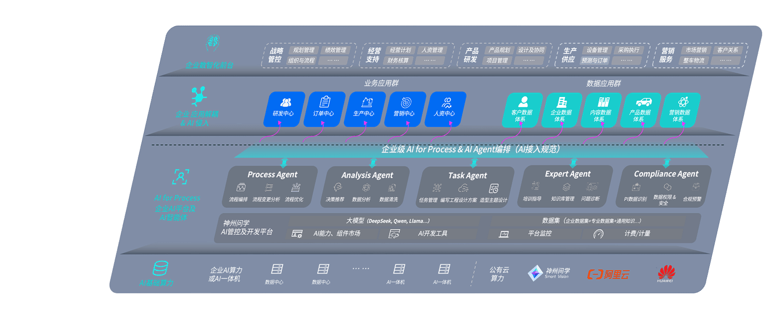 胜天国际问学智车解决方案是一套基于AI技术的汽车行业智能化系统,,,,覆盖从底层算力到顶层AI应用的全栈方案。。方案由算力层、、、模型层和应用层组成:算力层,,方案支持多种一体机配置,,具备云端灵活部署、、多云适配以及动态优化计算资源的能力;模型层,,,胜天国际问学平台版提供了企业级AI应用一站式构建与管理平台,,,,支持基于后训练强化技术的汽车企业专属模型的训练、、、、评测和运营;应用层,,胜天国际问学DeepSeek版提供包括超级员工、、智能招采、、智能营销、、、智能客服、、、、AI for BI等一系列解决方案,,,,可助力汽车行业实现数字化转型,,,让管理更智能、、响应更敏捷。。。。