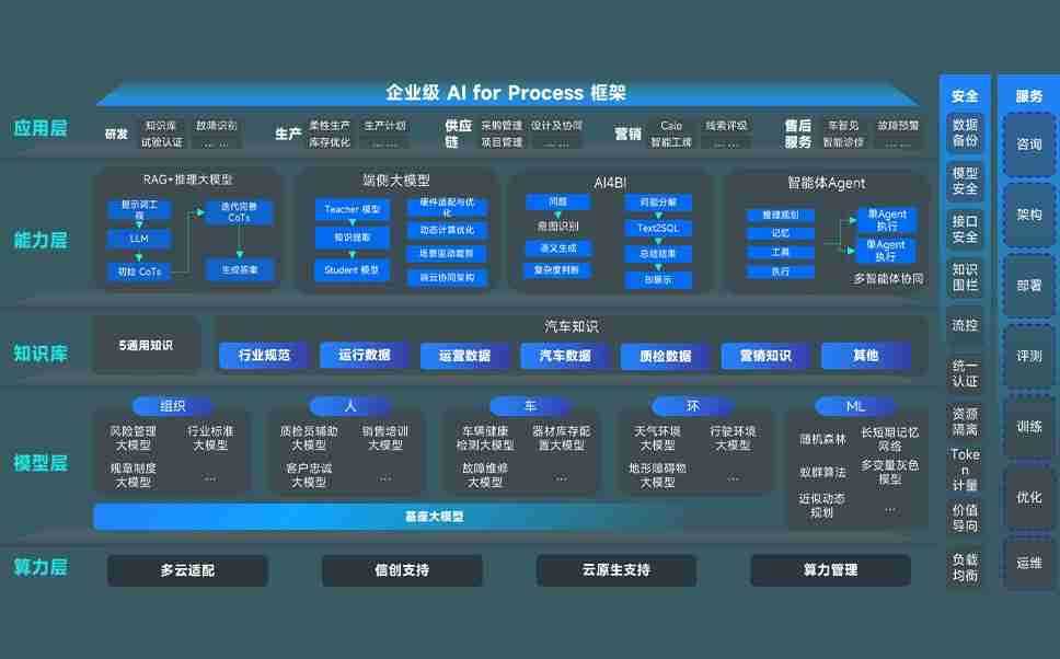 端到端的一站式AI工作空间深度融合了从企业战略规划到日常经营的全流程业务板块,,,定向解决车企内部领域多、、、、部门多、、、链条长、、、场景碎片化等难题,,,,支持车企快速构建以AI为核心的生产力写作体系,,,实现任务执行与AI能力的无缝集成与交互